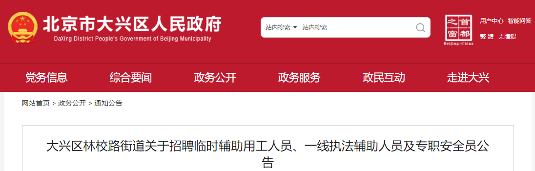 對擬聘用人員在北京市大興區(qū)人民政府網站進行公示,公示期為5個工作日。