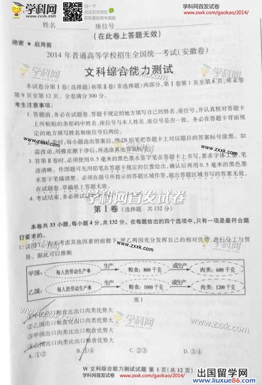 三月的駝云傾倒出二月的谷水,澆灌成六月的蓮花燦爛,高考這朵難以育成的花也即將盛放,只需要考生們最后的堅(jiān)持。想知道花兒最后開成的樣子,出國留學(xué)網(wǎng)會帶你來看。出國留學(xué)網(wǎng)高考頻道小編緊密關(guān)注2014年安徽高考文綜真題及答案,高考真題及答案一旦公布,便會顯示在此頁頭條,方便你查找。如果信息未顯示,可以按ctrl+F5刷新頁面,歡迎大家實(shí)時關(guān)注,更多2014北京高考科目真題及答案也會在考后第一時間公布,建議您收藏本網(wǎng)站(按ctrl+D即可)。最后祝同學(xué)們金榜題名,心事順?biāo)臁?BR> 2014年全國高考真題及答案匯總>>點(diǎn)擊查看