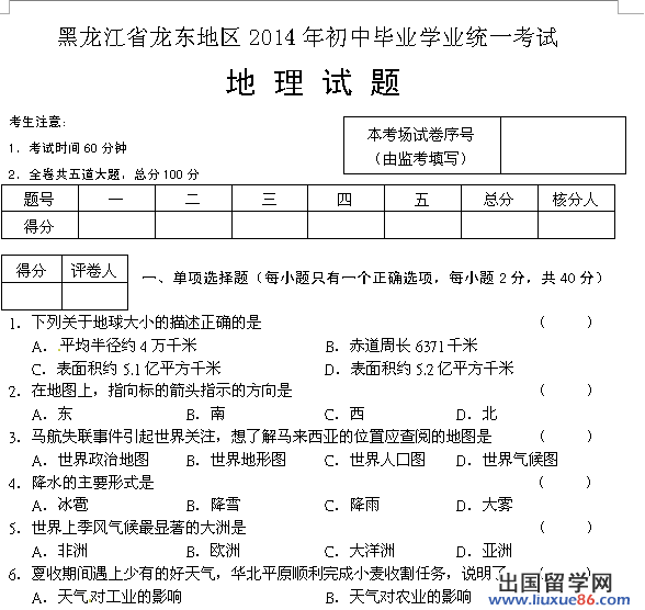 以下2014年佳木斯中考地理真題及答案由出國留學(xué)網(wǎng)中考頻道為您提供,希望對(duì)您有所幫助!