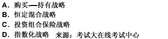 8、保持投資組合中各類(lèi)資產(chǎn)的恒定比例,在資產(chǎn)相對(duì)價(jià)值變化后,進(jìn)行再平衡。這種策略稱為(?。?。{Page}