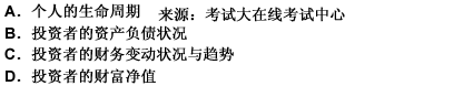 5、一般情況下,對(duì)于個(gè)人投資者而言,影響資產(chǎn)配置的最主要因素是( )。{Page}