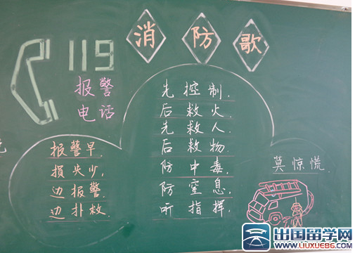 校園消防安全很重要,常言道:水火不合。所以我們要注意校園消防安全。部分校園火災(zāi)案例據(jù)統(tǒng)計(jì),2000年全國(guó)中小學(xué)生非正常死亡人數(shù)達(dá)到了14400人,2001年全國(guó)有16000余名中小學(xué)生死于安全事故,這意味著平均每天就有一個(gè)40多人的班級(jí)消失。數(shù)字是枯燥冰冷的,但它的背后卻是一個(gè)個(gè)消失的鮮活生命。這是多么恐怖,是多么悲慘。所以現(xiàn)在讓我們提高消防知識(shí),共度過(guò)美好生活吧!下面是出國(guó)留學(xué)網(wǎng)小編搜集來(lái)的校園消防安全黑板報(bào)若干以及消防安全小知識(shí)希望能幫對(duì)大家有用!更多校園消防安全黑板報(bào)請(qǐng)關(guān)注出國(guó)留學(xué)網(wǎng)的黑板報(bào)欄目!