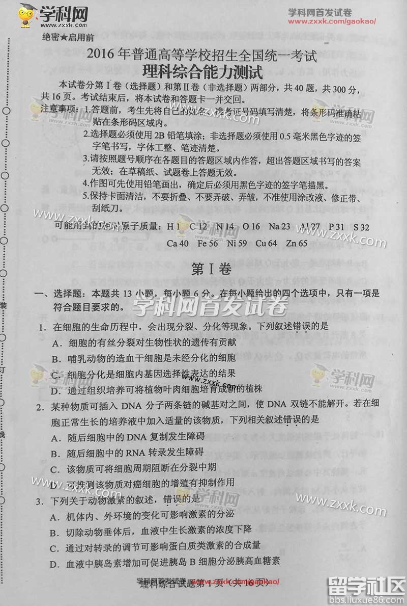 自古天道酬勤,有恒乃成,2016年高考已經(jīng)落下帷幕了,各位高考生肯定會關心自己考的怎樣?出國留學網(wǎng)高考頻道為大家送來“及時雨”,首發(fā)2016年甘南高考理綜答案(圖片版),最后小編祝廣大2016年高考考生都能考生理想院校。