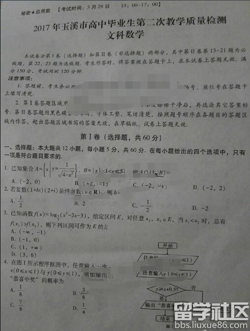 2017玉溪第二次教學(xué)質(zhì)檢于3月29日-30日考試,出國(guó)留學(xué)網(wǎng)高考網(wǎng)小編整理了2017玉溪第二次教學(xué)質(zhì)檢文科數(shù)學(xué)試題及答案,供同學(xué)們參考學(xué)習(xí)。