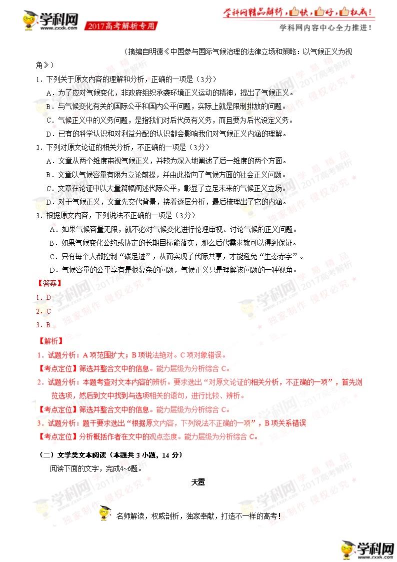 點(diǎn)擊下載2017年高考全國卷1語文真題及答案解析(完整版)