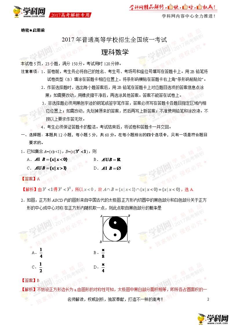 下載2017年高考全國卷1理科數(shù)學(xué)真題及答案解析(完整版)