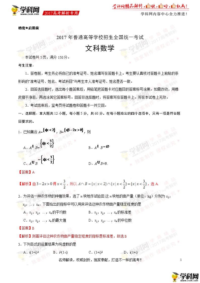 2017黃山高考文科數(shù)學(xué)真題及答案解析(圖片版)