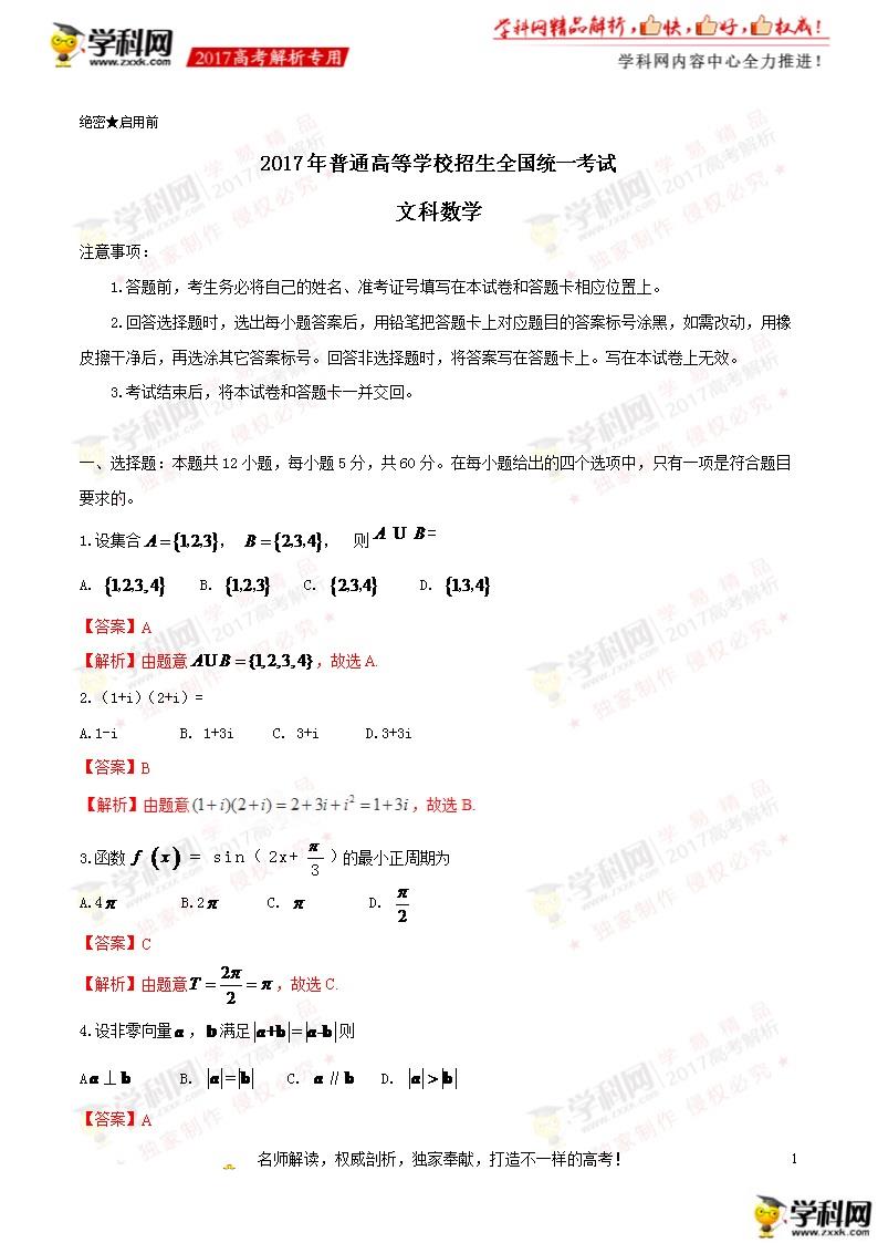2017年博爾塔拉高考文科數(shù)學試題及答案解析