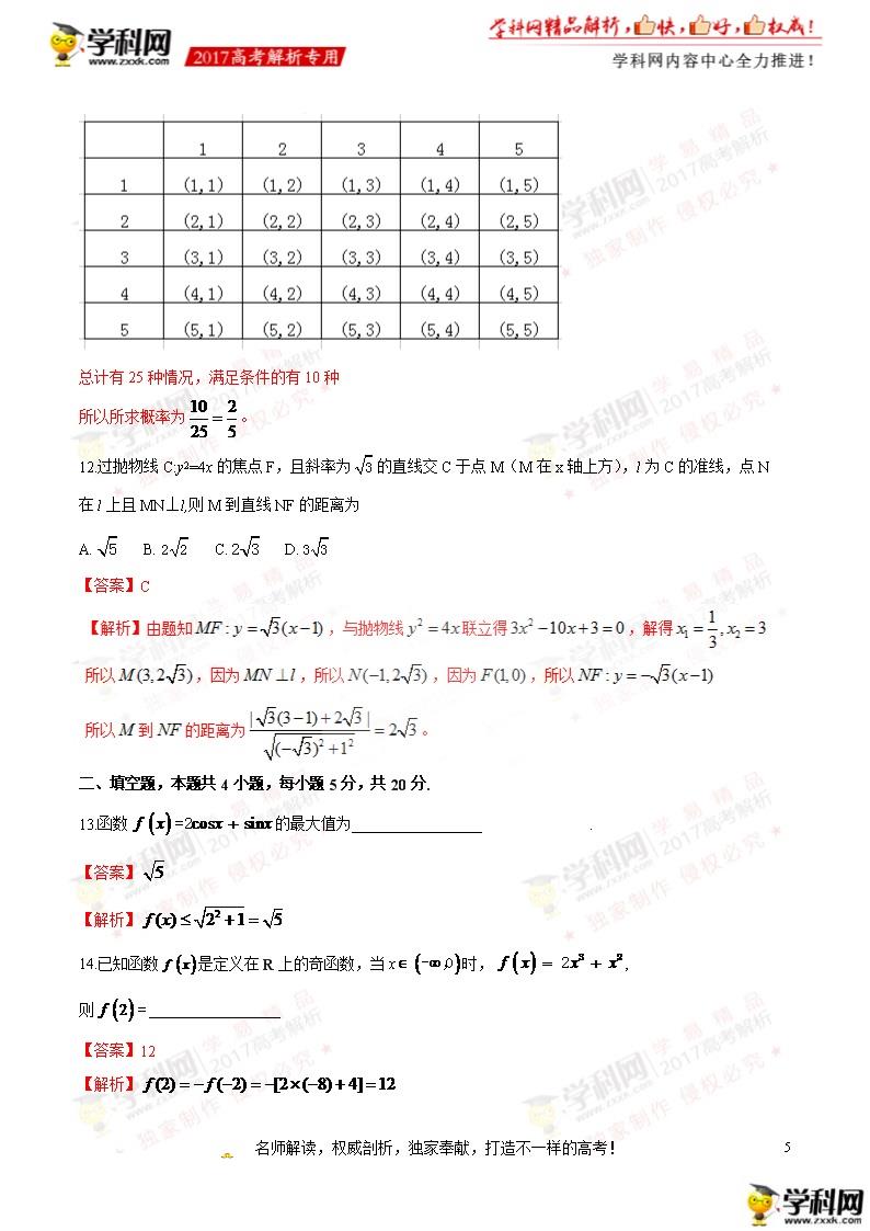 2017銀川高考文科數(shù)學(xué)真題及答案解析已公布