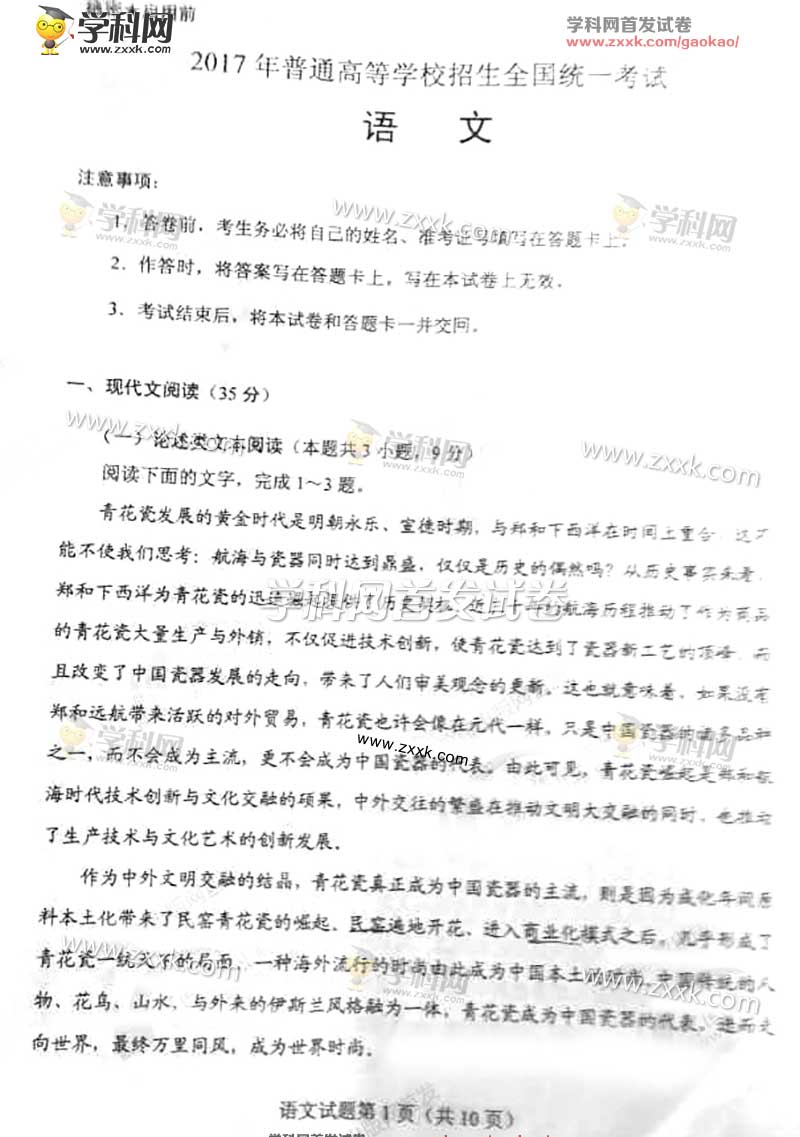今年高考結(jié)束的時(shí)候,出國(guó)留學(xué)網(wǎng)高考頻道將第一時(shí)間給你帶來2017奎屯高考語文真題,歡迎大家瀏覽,祝各位考生高考考出好成績(jī)!