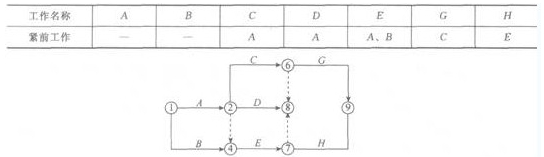 5、根據(jù)下表邏輯關(guān)系控制的雙代號(hào)網(wǎng)絡(luò)圖,圖中存在的作圖錯(cuò)誤是( )。