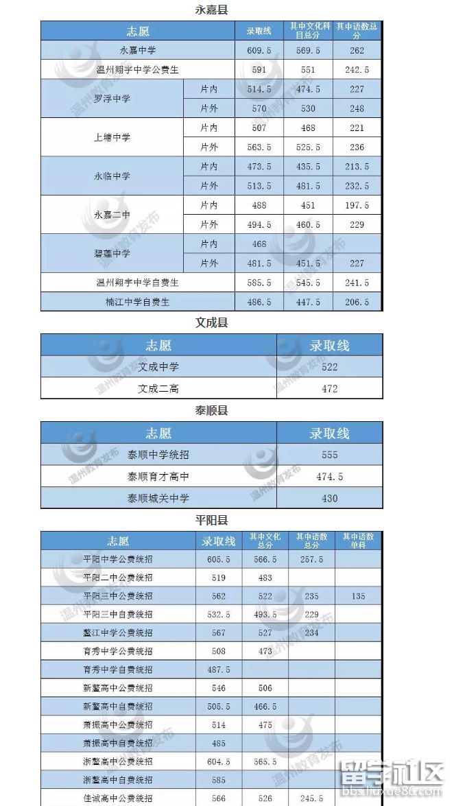 2018年溫州各縣(市、區(qū))普通高中志愿錄取分數線