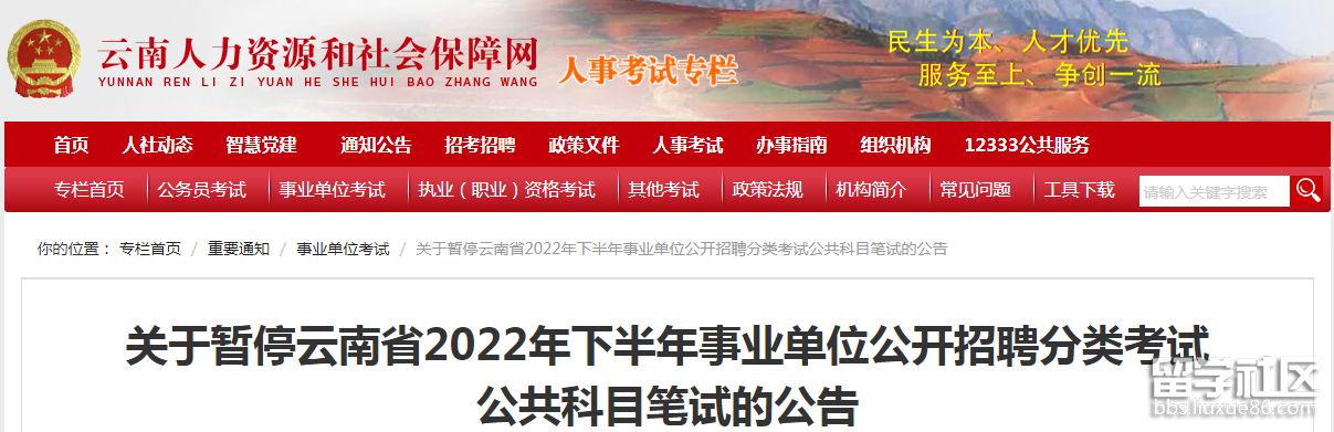 注意!2022年云南省事業(yè)單位考試筆試暫停!
