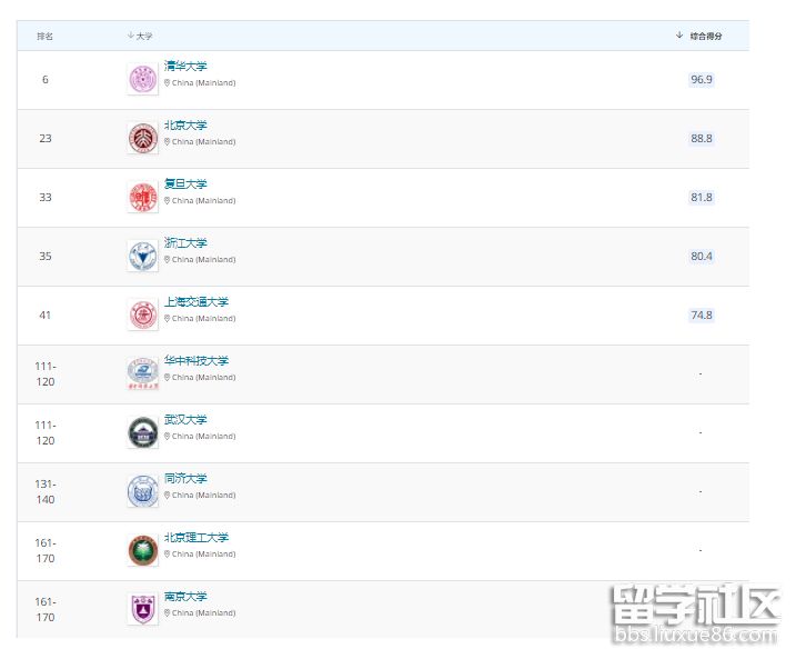 2022QS世界大學畢業(yè)證就業(yè)實力排行中國大陸前十