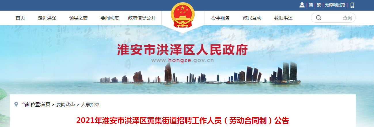 2021江蘇省淮安市洪澤區(qū)黃集街道招聘公告已發(fā)布。報(bào)名時(shí)間:2021年9月6日至14日(工作日)報(bào)名。上午8:30—11:45,下午2:30—5:30。為您整理了招聘條件和報(bào)名流程,供您參考。