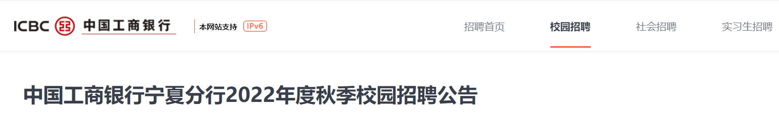 2022年度寧夏中國工商銀行寧夏分行秋季校園招聘公告【150人】已發(fā)布,因業(yè)務(wù)發(fā)展需要,現(xiàn)誠邀優(yōu)秀青年學(xué)子加盟,期待與您同發(fā)展,共成長。現(xiàn)將招聘信息發(fā)布如下: