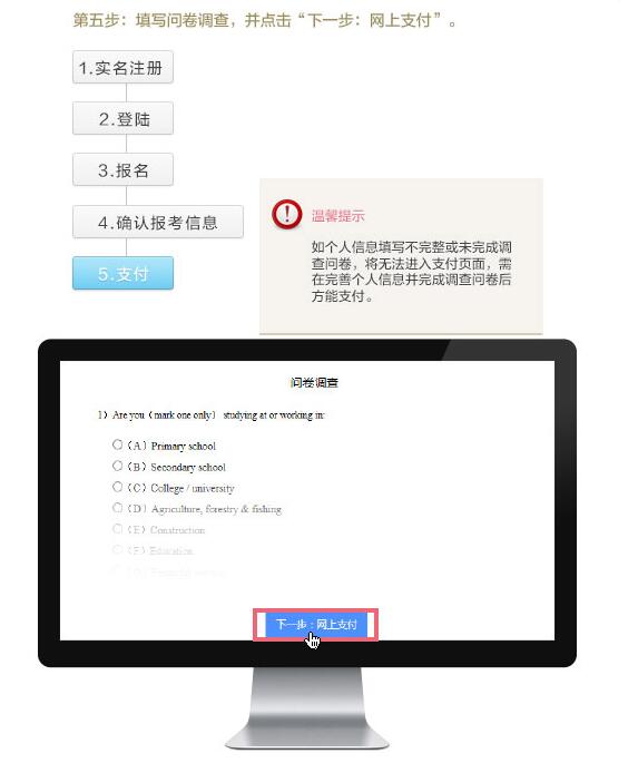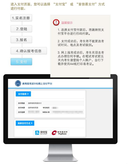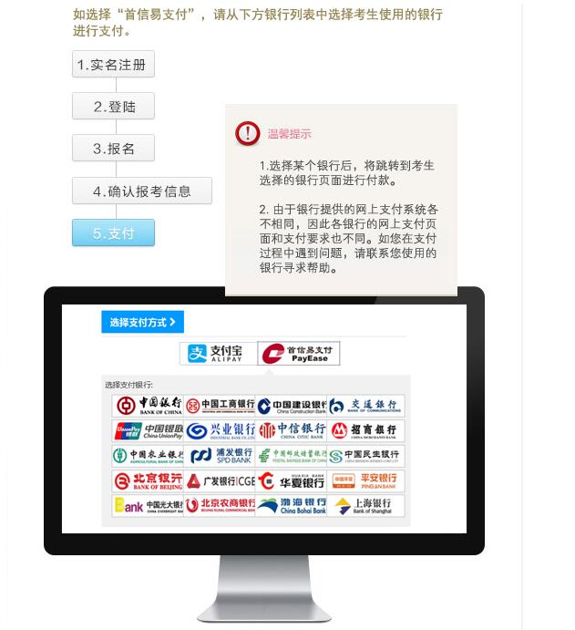 網(wǎng)上支付考費(fèi):劍橋商務(wù)英語(yǔ)證書(shū)考試費(fèi)的支付方式僅限于網(wǎng)上支付。考生可任選報(bào)名網(wǎng)站所連接的網(wǎng)上銀行支付系統(tǒng)交納考費(fèi)。