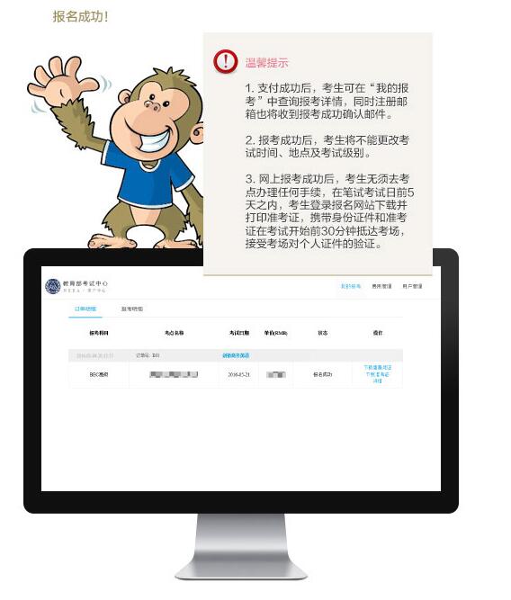 網(wǎng)上支付時(shí)限:考生須在選擇考點(diǎn)、考試級(jí)別、考試時(shí)間填寫(xiě)個(gè)人報(bào)名信息及背景問(wèn)卷(下稱(chēng):預(yù)訂考位)后24小時(shí)之內(nèi)完成網(wǎng)上付費(fèi),如考生只預(yù)訂了考位,未完成考試費(fèi)支付,并不意味著考生已報(bào)名成功,在24小時(shí)之后系統(tǒng)將自動(dòng)取消尚未支付考試費(fèi)考生已預(yù)定的座位;考生在未支付考試費(fèi)的情況下,在24小時(shí)之內(nèi)也可隨時(shí)自行取消已預(yù)定的座位。