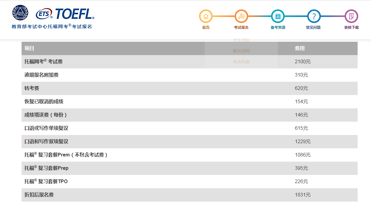 點擊“付款”鏈接,所有托福網(wǎng)考提供的服務和相關費用參見:2021年4月24日托??荚囎钚碌氖召M標準