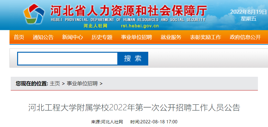 2022年河北工程大學(xué)附屬學(xué)校第公開招聘工作人員公告已發(fā)布,報名時間:2022年8月18日9:00--8月27日18:00,現(xiàn)將招聘公告原文發(fā)布如下: