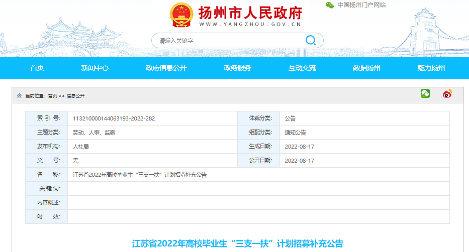 2.江蘇省2022年高校畢業(yè)生“三支一扶”計(jì)劃招募公告(三)