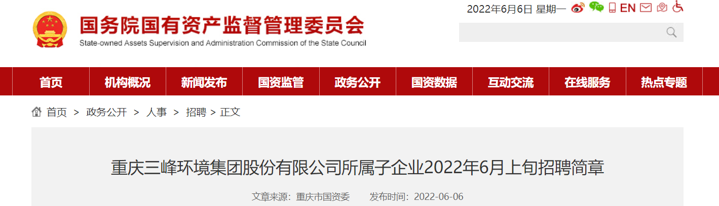 點擊查看附件:三峰環(huán)境集團所屬子企業(yè)2022年6月上旬公開招聘崗位信息表