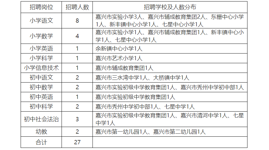 2022浙江嘉興南湖區(qū)面向優(yōu)秀畢業(yè)生公開招聘事業(yè)編制教師27人,網(wǎng)絡(luò)報(bào)名截止時(shí)間為2021年11月21日24:00,現(xiàn)將招聘公告原文發(fā)布如下: