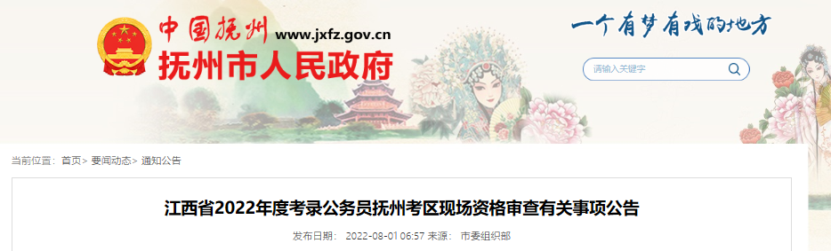 根據(jù)《江西省2022年度考試錄用公務(wù)員公告》和《江西省2022年度考試錄用公務(wù)員面試及調(diào)劑有關(guān)事項(xiàng)公告》有關(guān)規(guī)定,現(xiàn)將江西省2022年度考試錄用公務(wù)員撫州考區(qū)現(xiàn)場(chǎng)資格審查有關(guān)事項(xiàng)公告如下:
