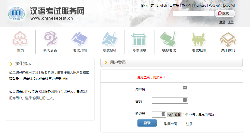 1、登錄漢語(yǔ)考試服務(wù)網(wǎng)www.chinesetest.cn。