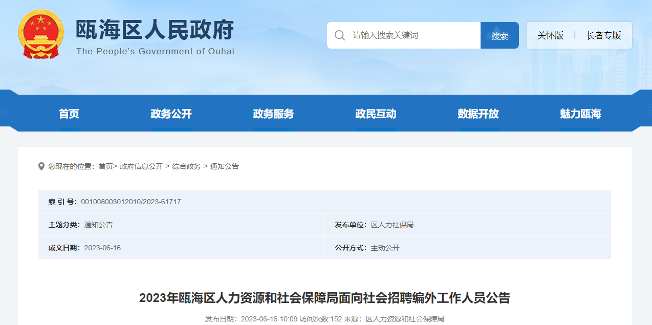 原文標(biāo)題:2023年甌海區(qū)人力資源和社會(huì)保障局面向社會(huì)招聘編外工作人員公告