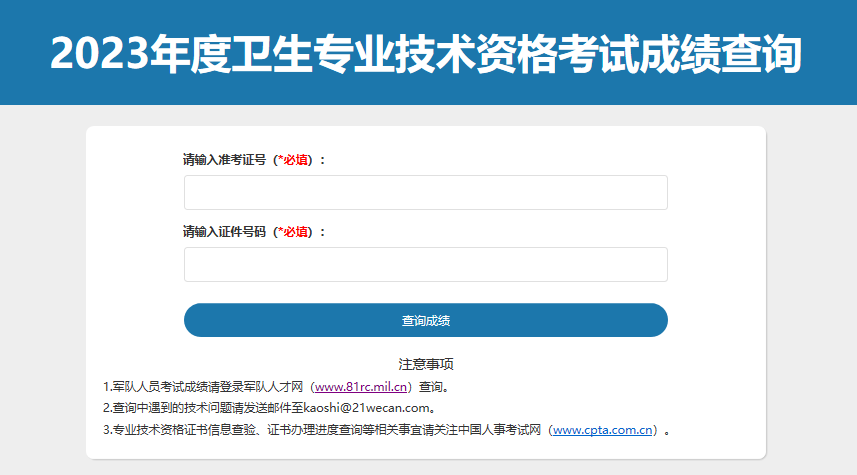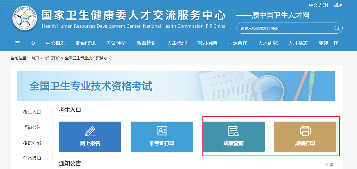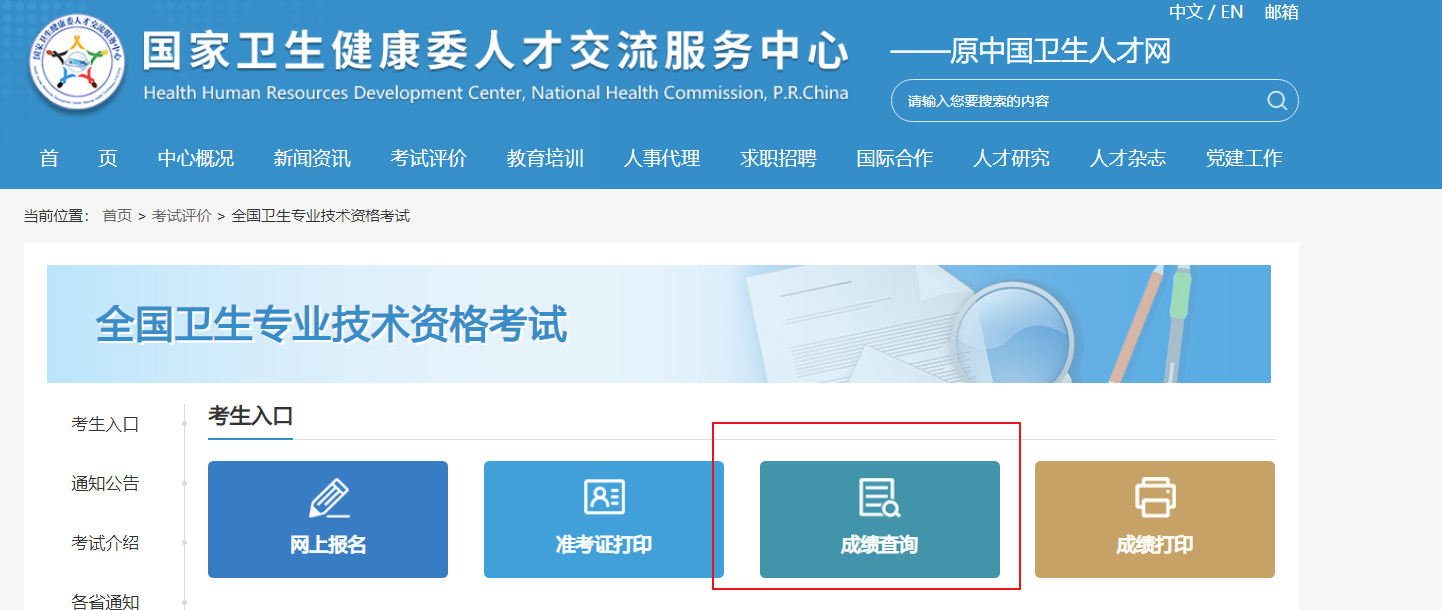 1、登錄國家衛(wèi)生健康委人才交流服務(wù)中心網(wǎng)站,點擊進(jìn)入2023年全國衛(wèi)生專業(yè)技術(shù)資格考試查分入口。