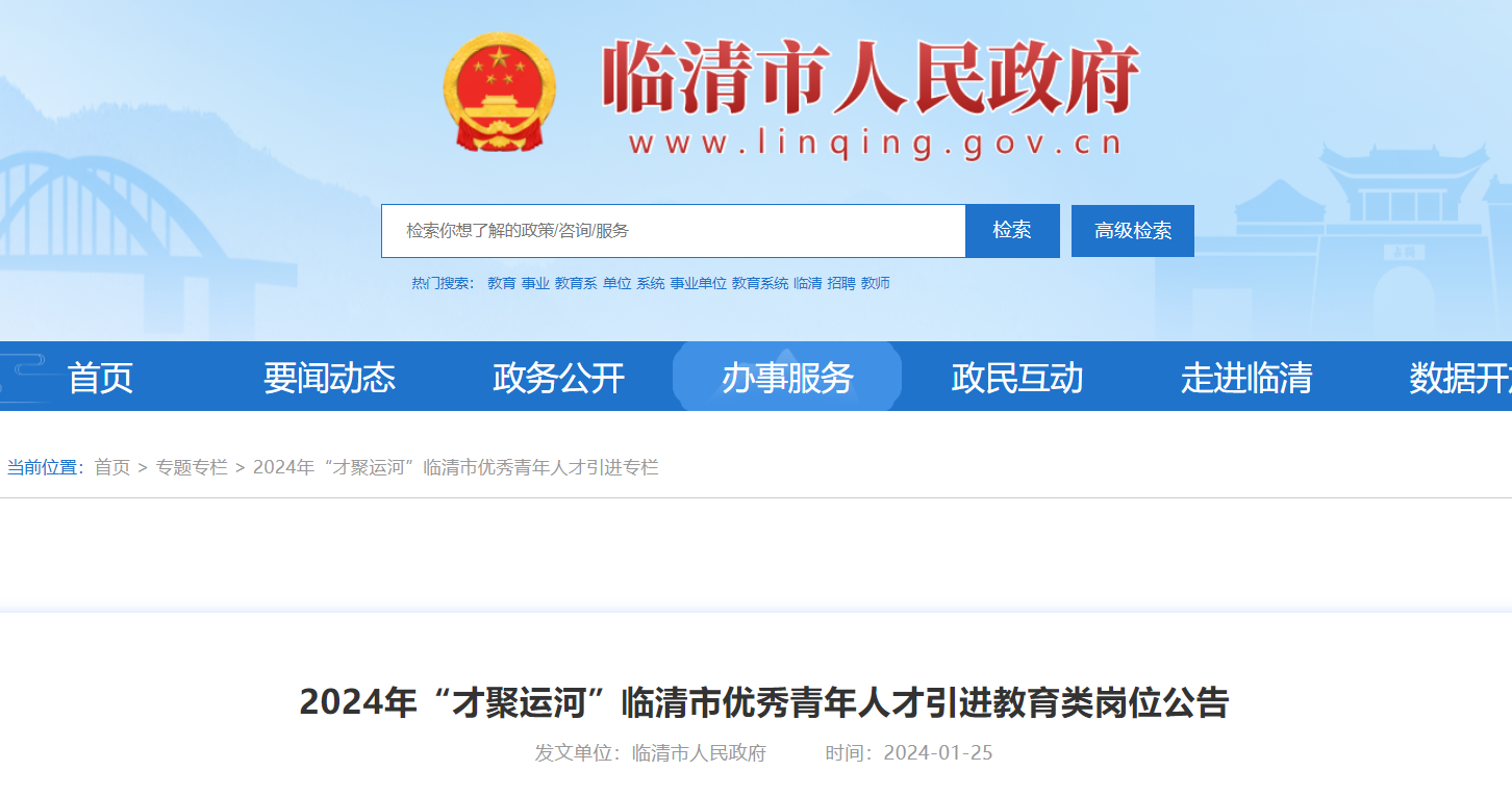 為進一步優(yōu)化教育事業(yè)單位人才隊伍結(jié)構(gòu),推進教育強市建設(shè),決定引進一批優(yōu)秀人才,現(xiàn)將2024年臨清市教育類優(yōu)秀青年人才引進有關(guān)事項公告如下。
