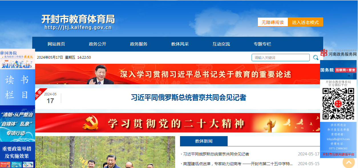 為了讓每位考生都能及時(shí)了解自己的考試成績,2024年河南開封中考成績查詢?nèi)肟陂_通后,考生和家長可通過為大家整理的2024年河南開封中考成績查詢網(wǎng)站(開封市教育體育局:https://jtj.kaifeng.gov.cn/)進(jìn)行查分。