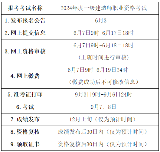 根據(jù)《人力資源社會(huì)保障部辦公廳關(guān)于2024年度專(zhuān)業(yè)技術(shù)人員職業(yè)資格考試工作計(jì)劃及有關(guān)事項(xiàng)的通知》(人社廳發(fā)〔2024〕1號(hào))2024年度一級(jí)建造師職業(yè)資格考試于9月7日、8日舉行?,F(xiàn)將有關(guān)事項(xiàng)通知如下:
